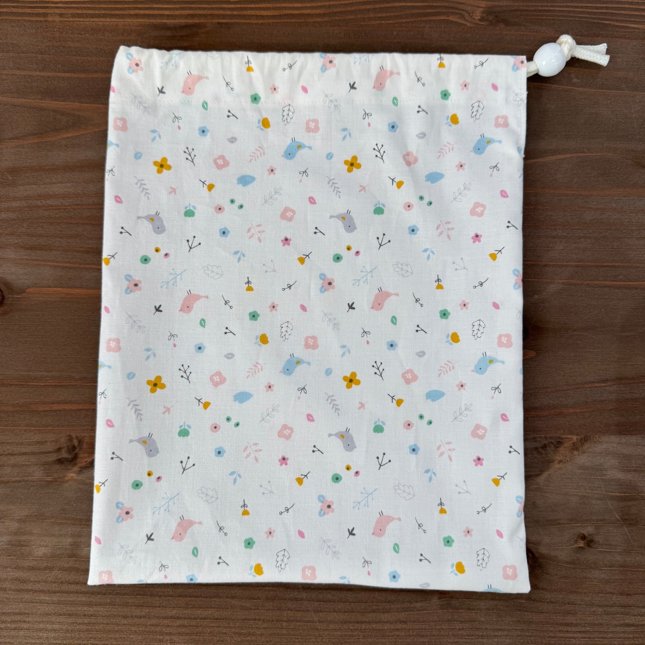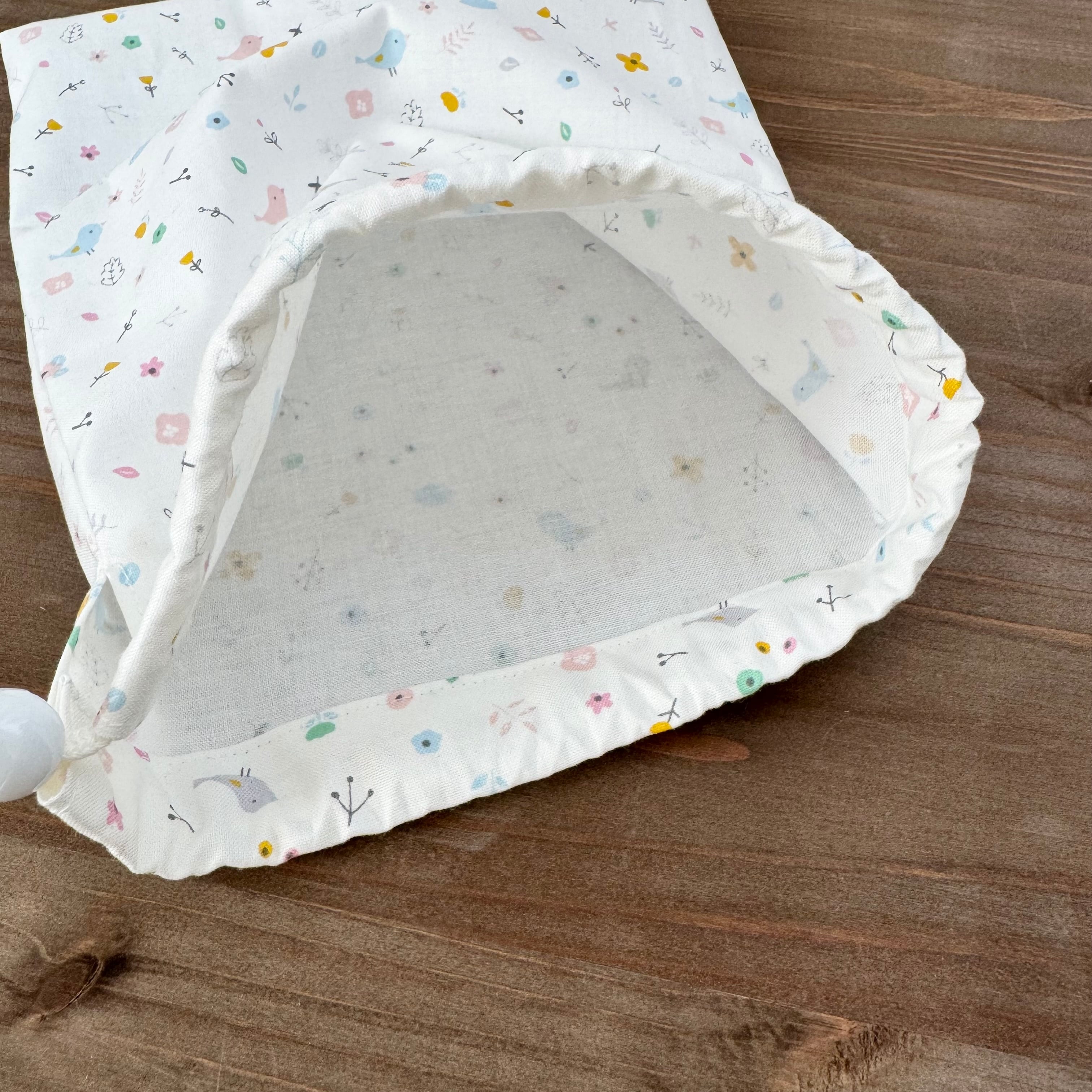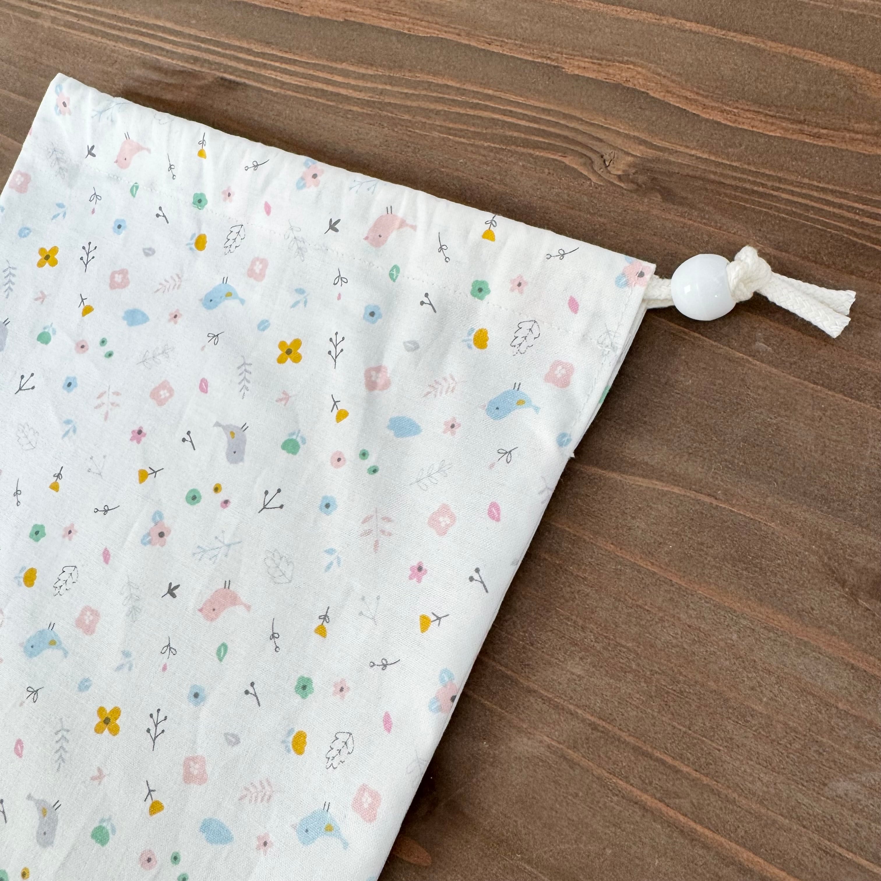 巾着袋(給食袋) 25×20cm 【小鳥とお花柄】★KB. シンプル 女の子|通園通学用のかわいい巾着袋や入園オーダーHoshizora☆ほしぞら