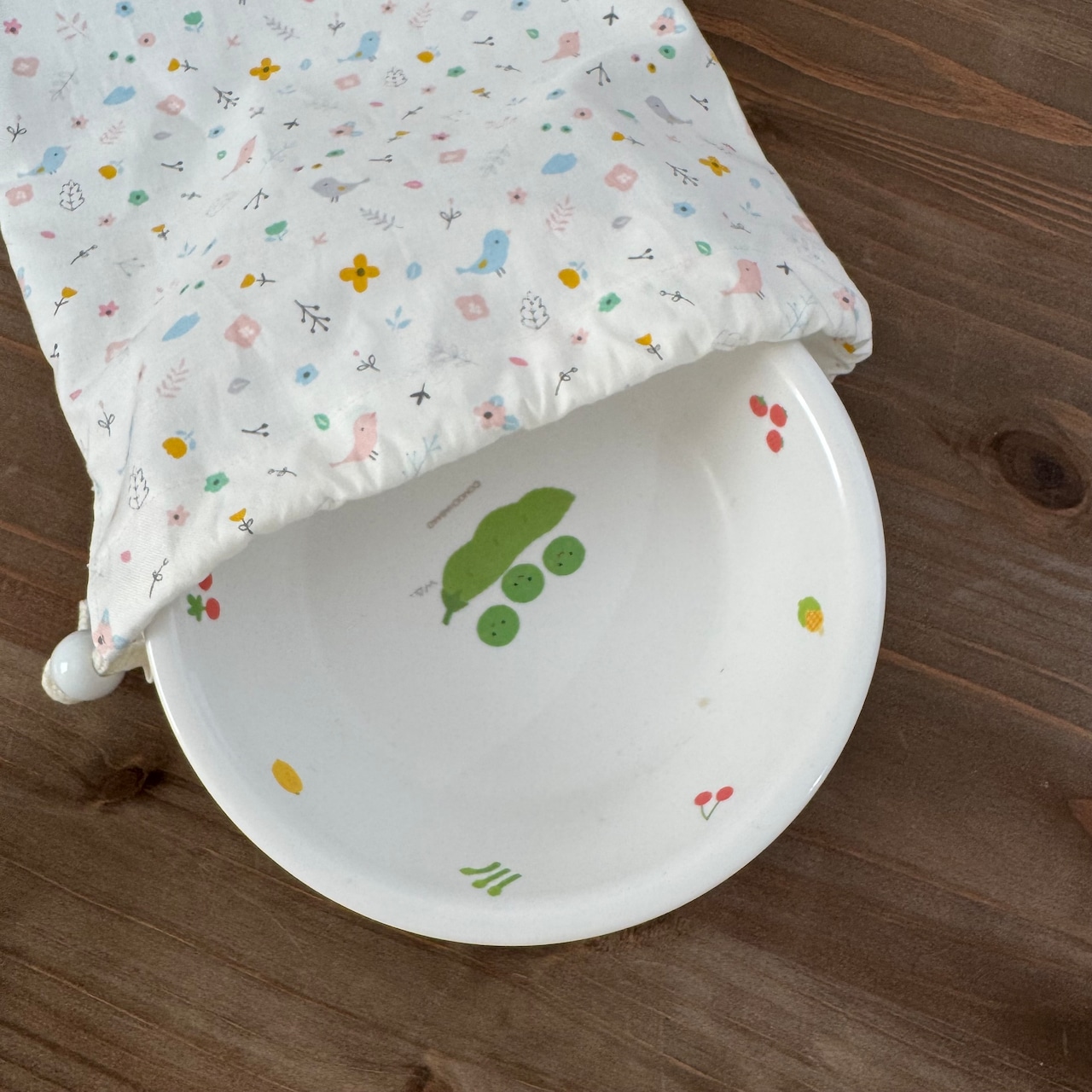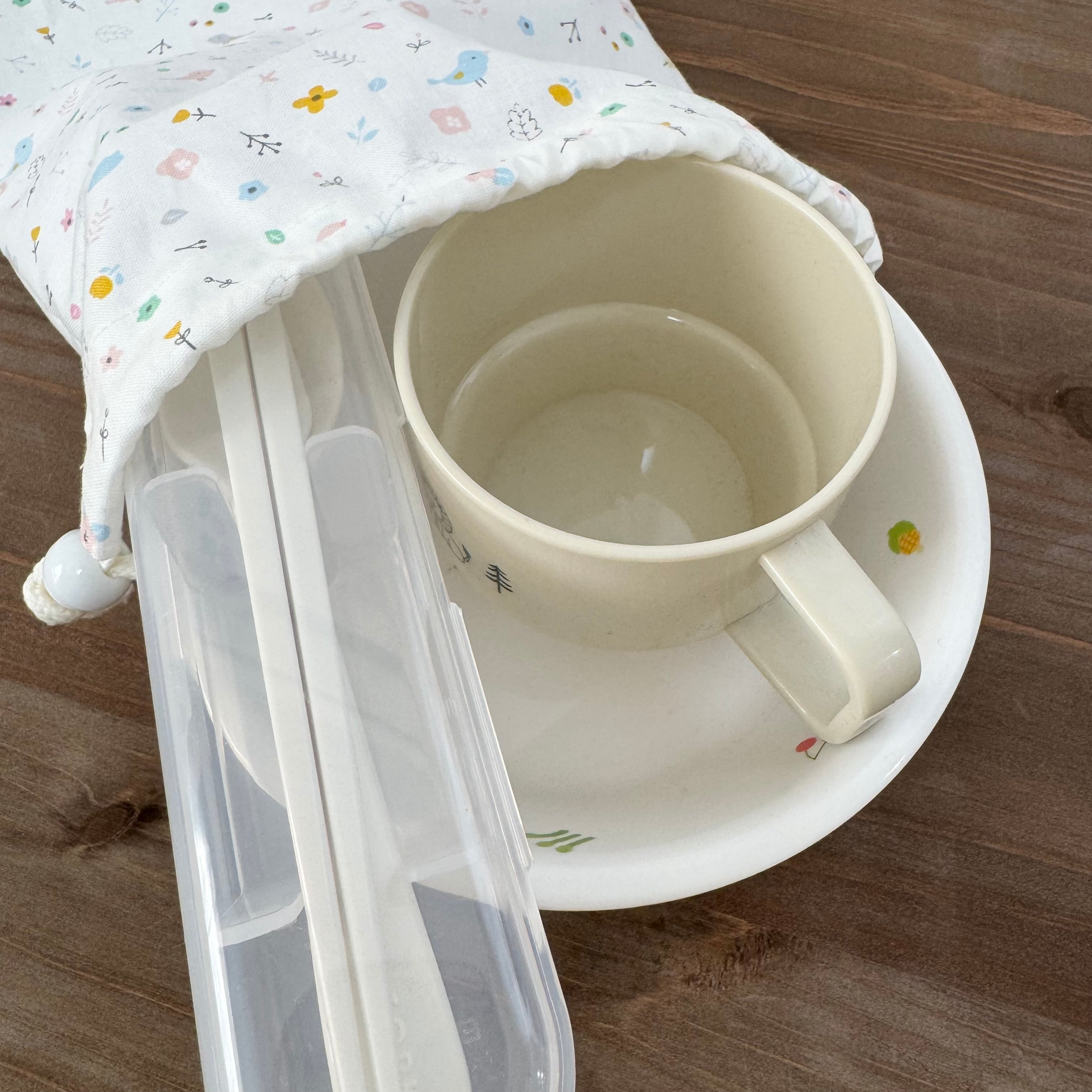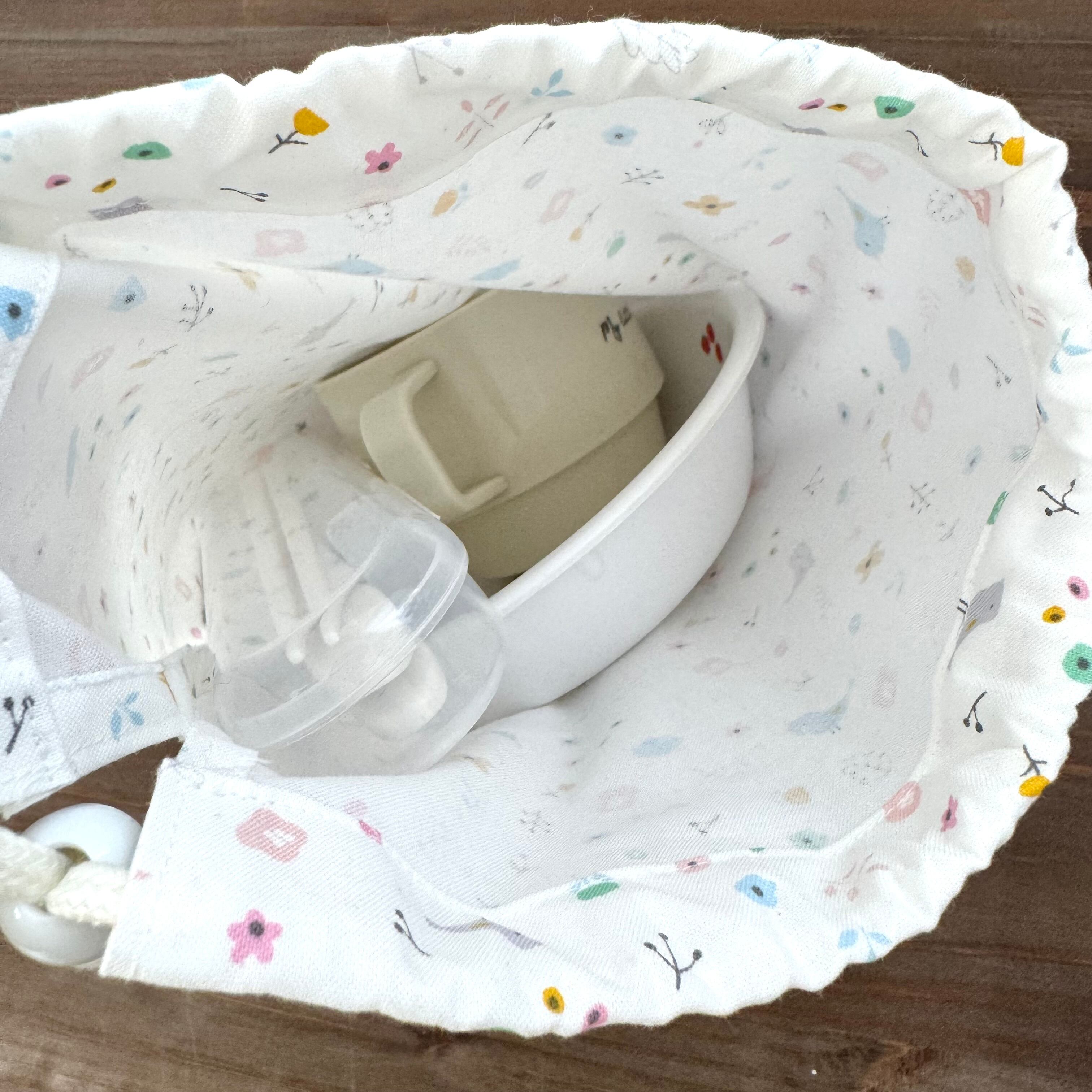 巾着袋(給食袋) 25×20cm 【小鳥とお花柄】★KB. シンプル 女の子|通園通学用のかわいい巾着袋や入園オーダーHoshizora☆ほしぞら