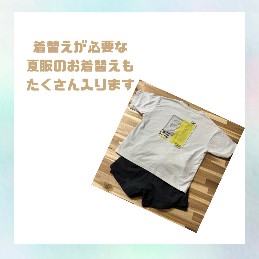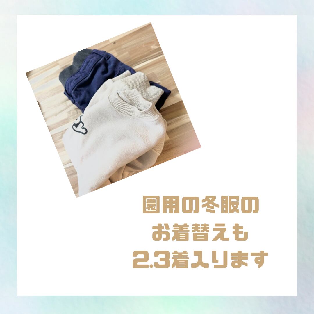 お着替え袋(サイズが大きい子でなければ、オールシーズン、年長さんまで3着分ずつのお着替えが入ります。)