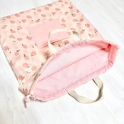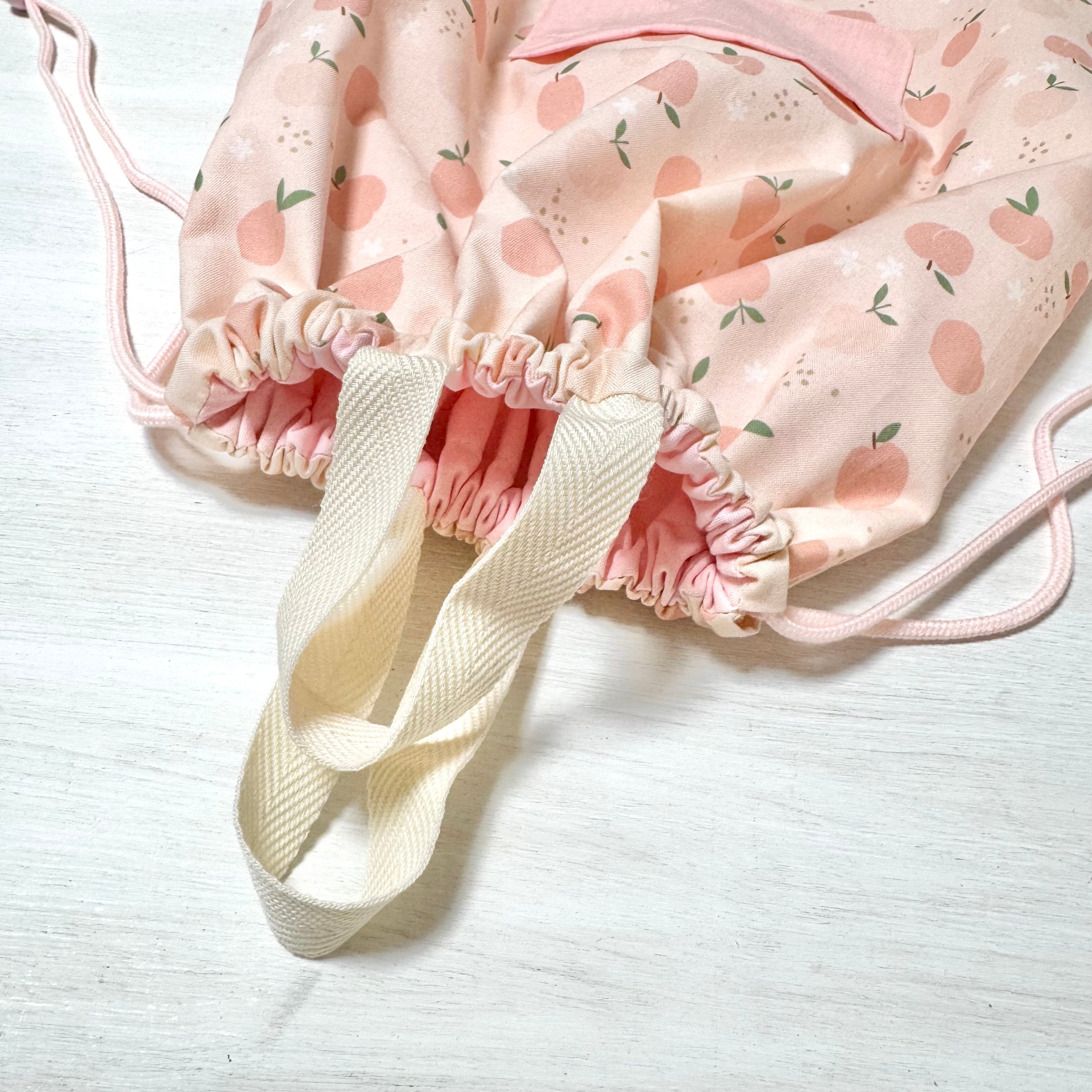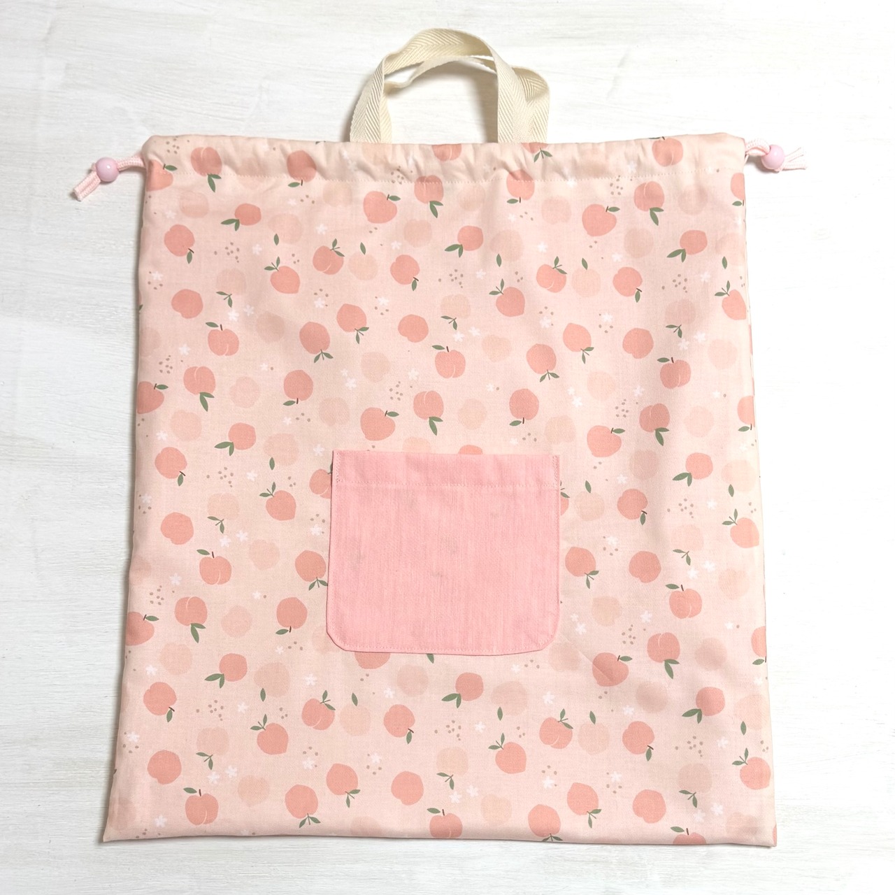 公式LINEメッセージより/オーダー品/巾着袋(特大)☆45×40cm【ピーチ柄】★KD. 女の子 シンプル 桃 ポケット付き 持ち手付き|通園通学用のかわいい巾着袋や入園オーダーHoshizora☆ほしぞら