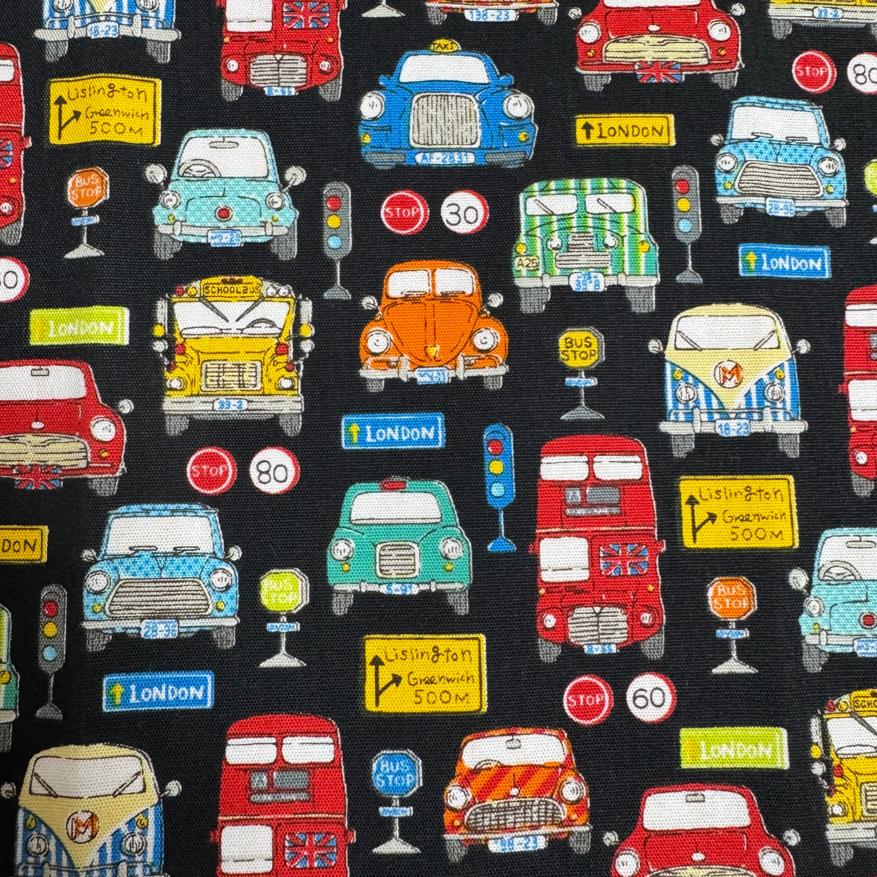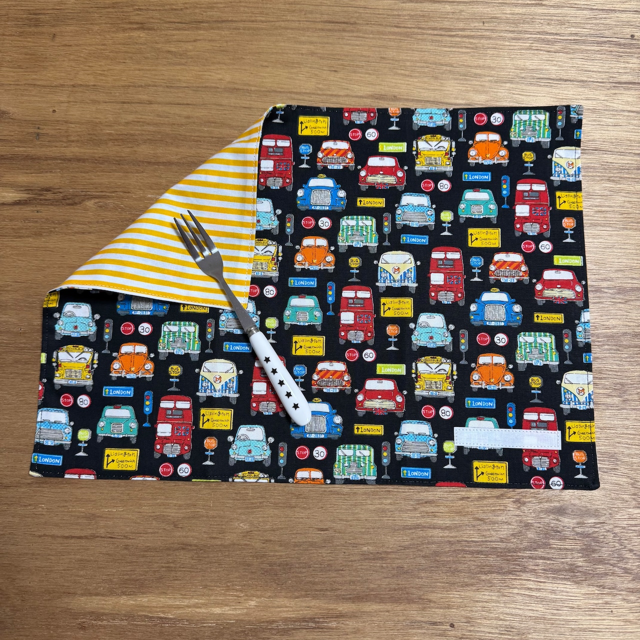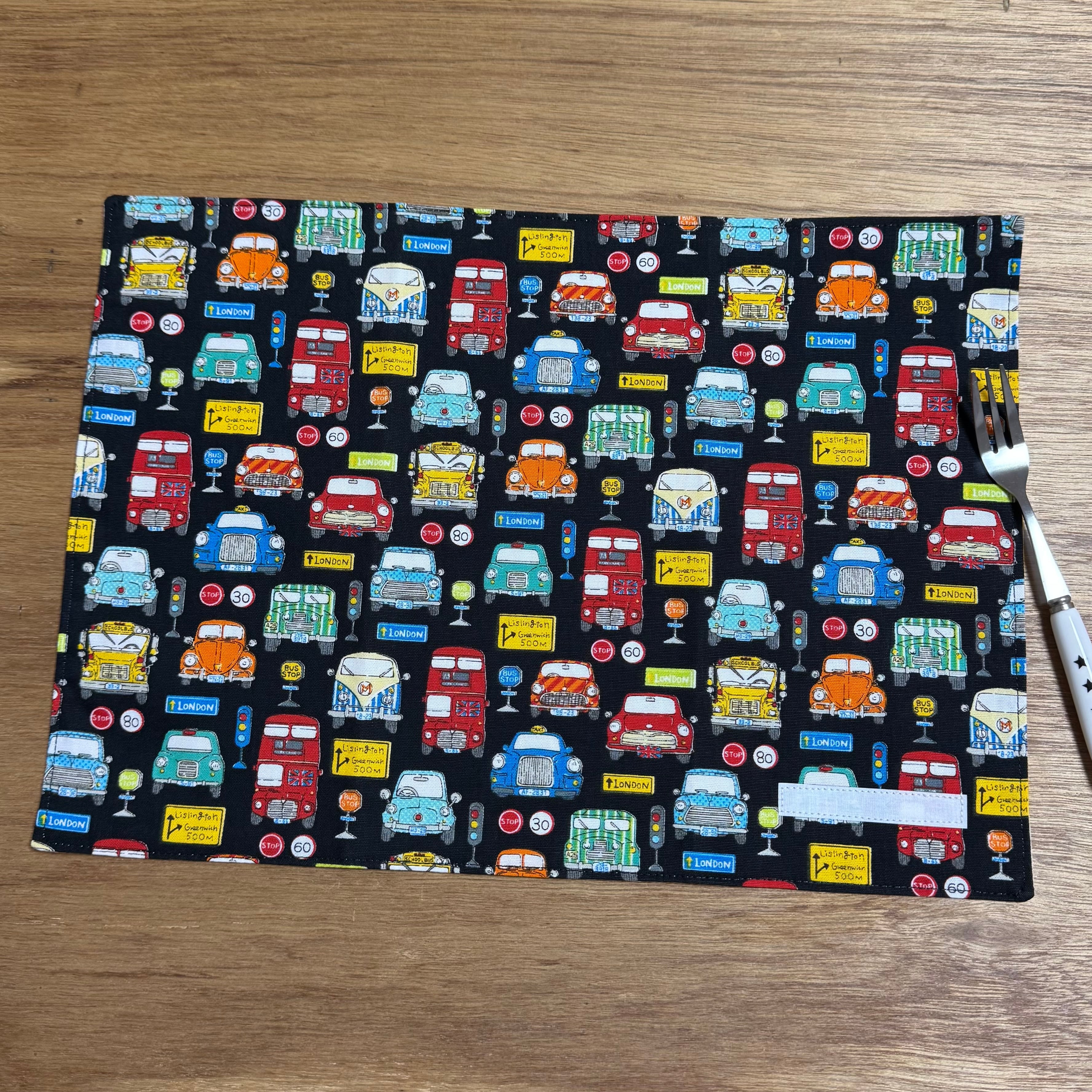 ランチョンマット☆25×35cmブラック【レトロカー柄】★RM. 車 男の子 裏地付き|通園通学用のかわいい巾着袋や入園オーダーHoshizora☆ほしぞら