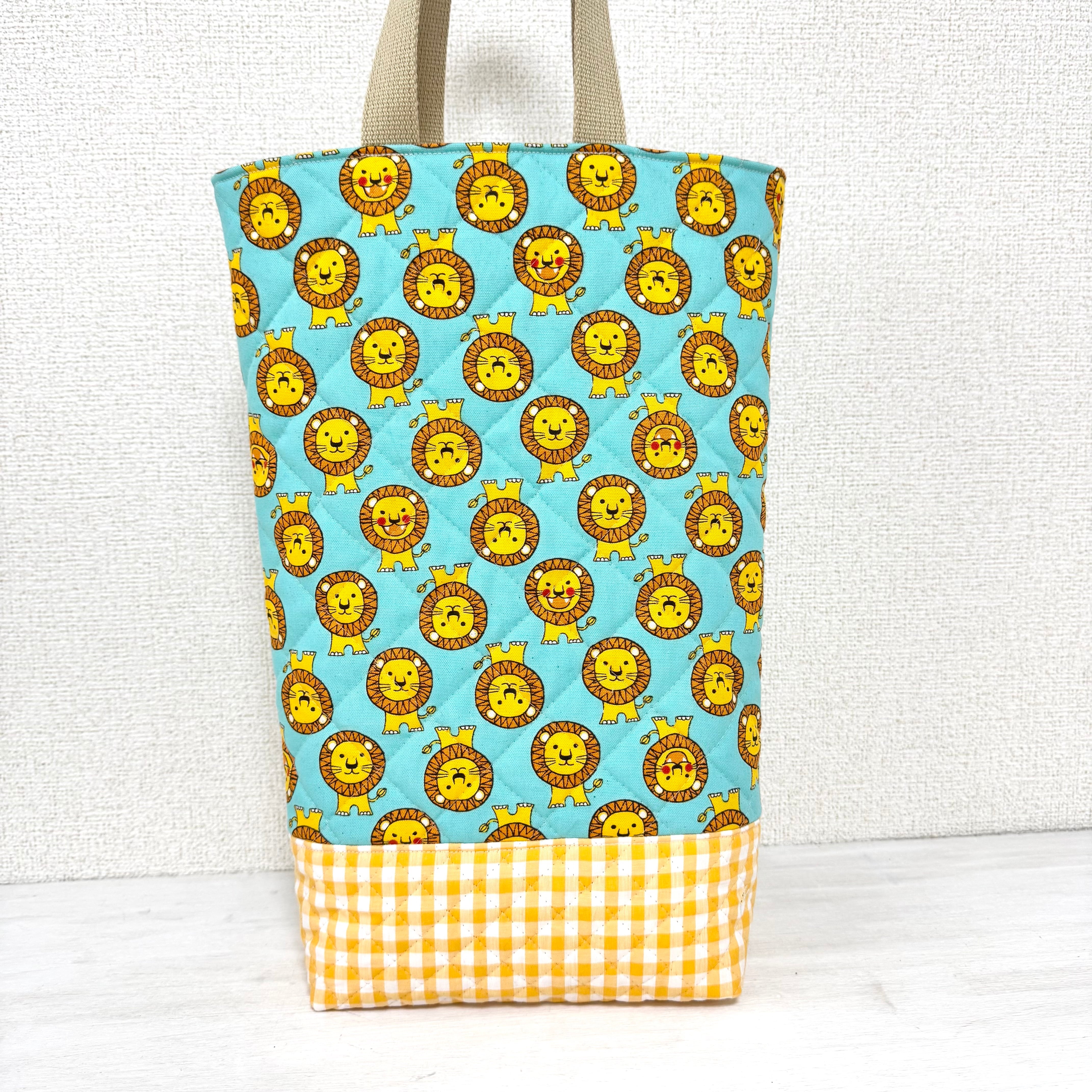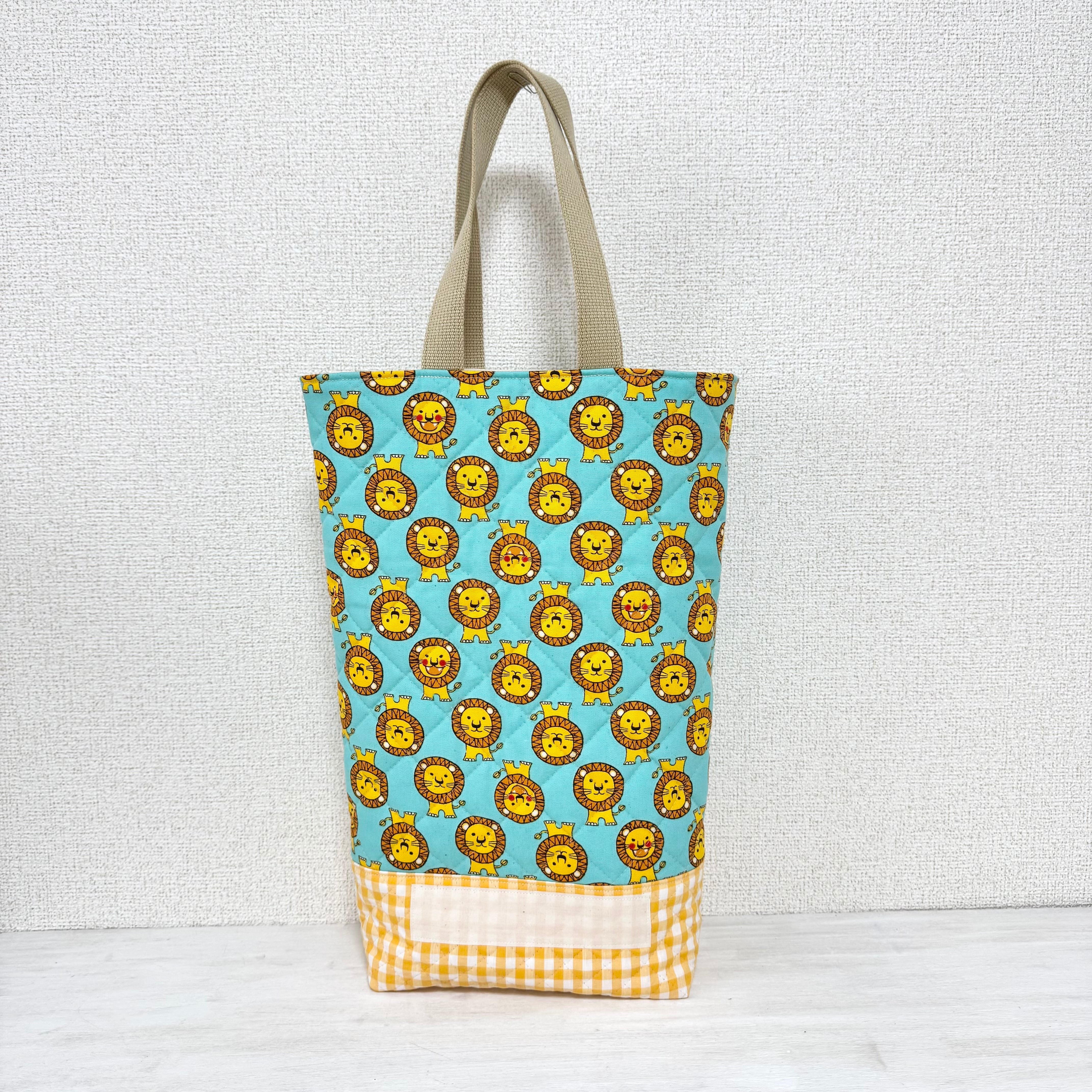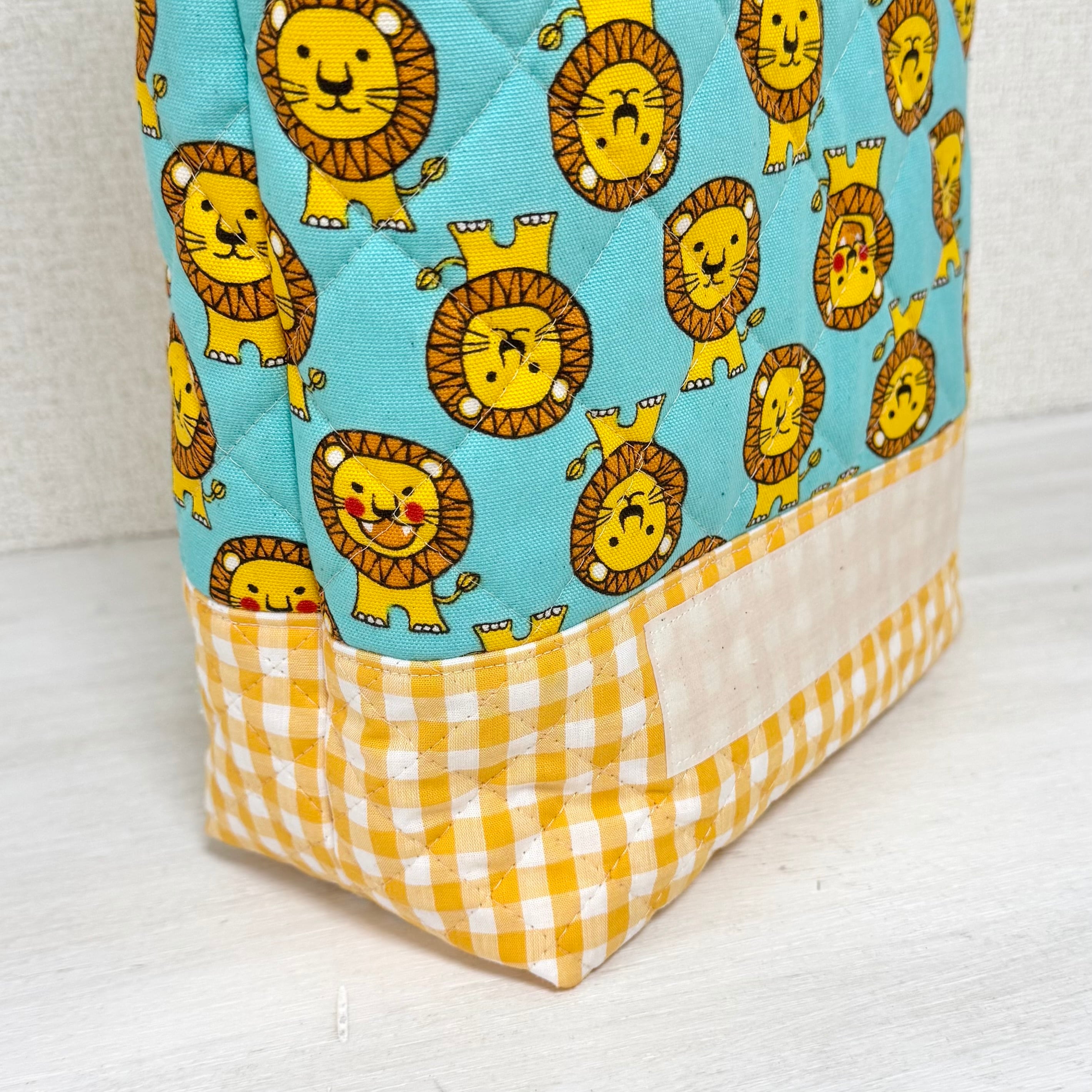 メッセージより/オーダー通園バッグ/縦38×28〜30cmマチ10cm 持ち手40cm キルティング 園指定サイズ 男の子 ライオン|通園通学用のかわいい巾着袋や入園オーダーHoshizora☆ほしぞら