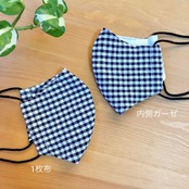 涼感加工ダブルガーゼタイプは【子供マスク(裏地ガーゼ)】という青いマスクの画像を参考にしてください。1枚布の【ちょっとでも涼しくエチケットマスク】と若干サイズが異なります。