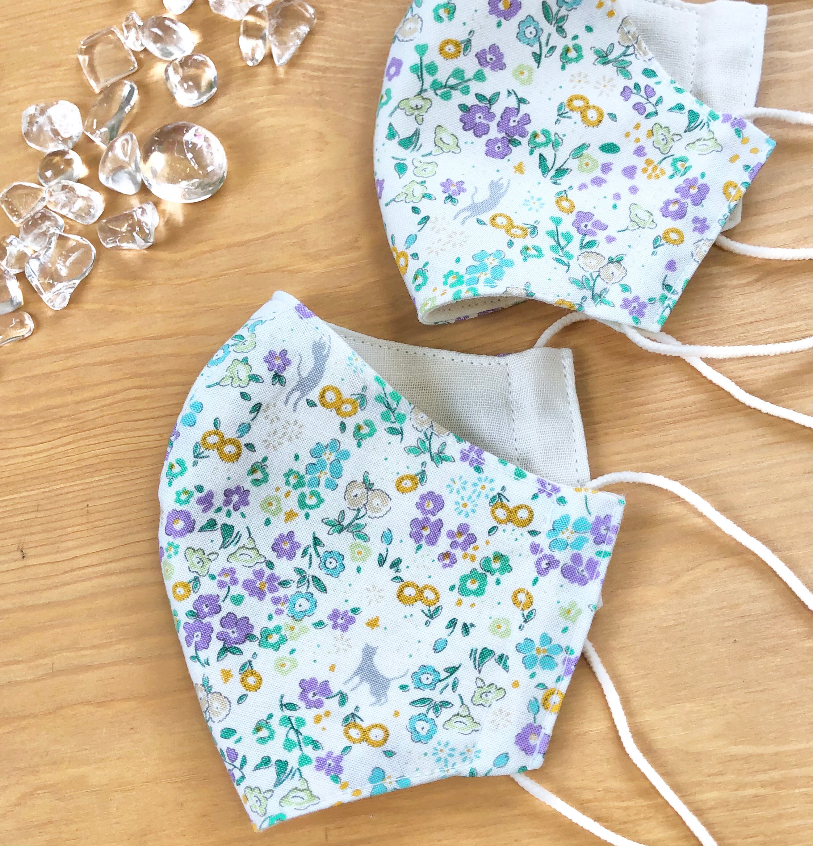 送料無料/こども布マスク涼感【ネコと花】CM.149|通園通学用のかわいい巾着袋や入園オーダーHoshizora☆ほしぞら