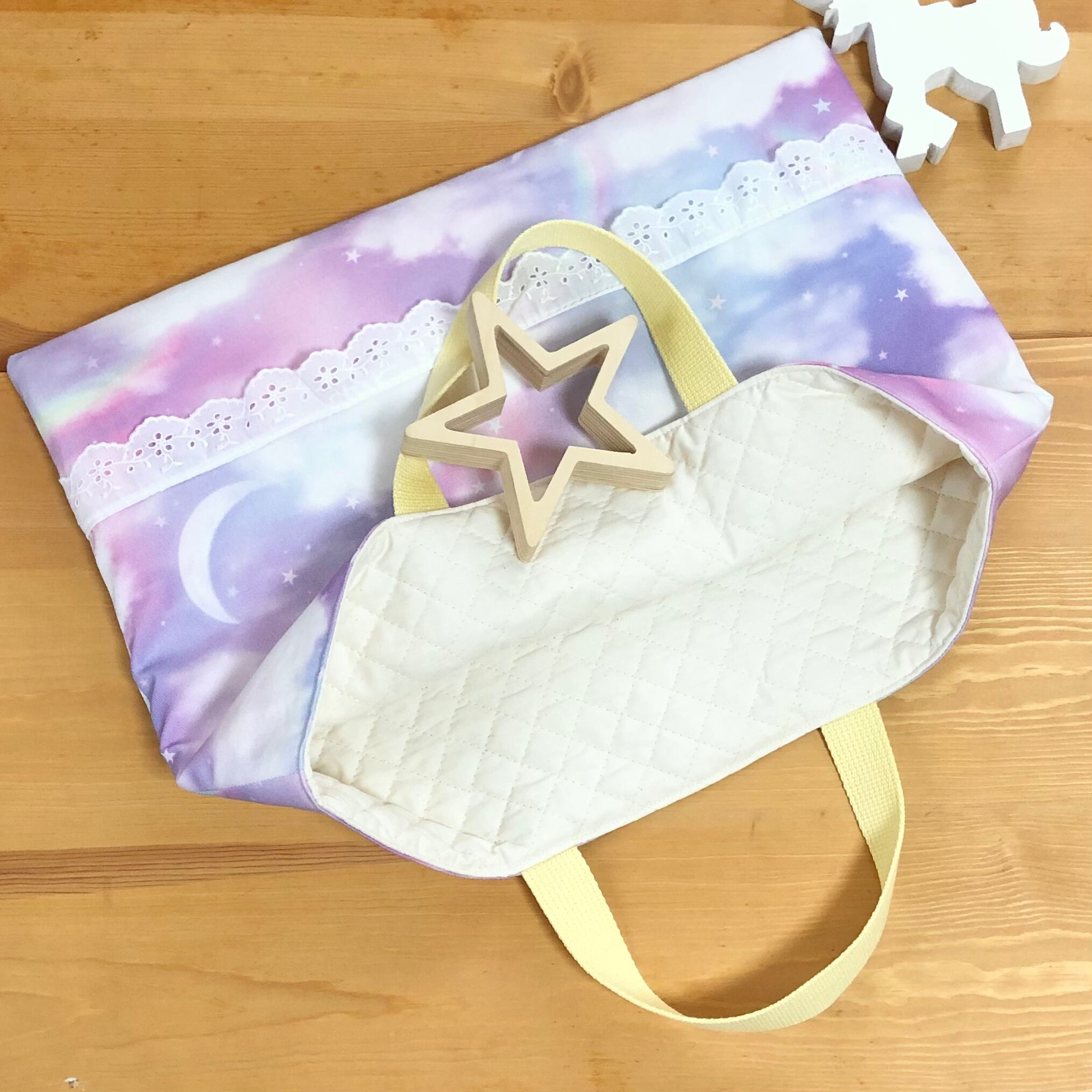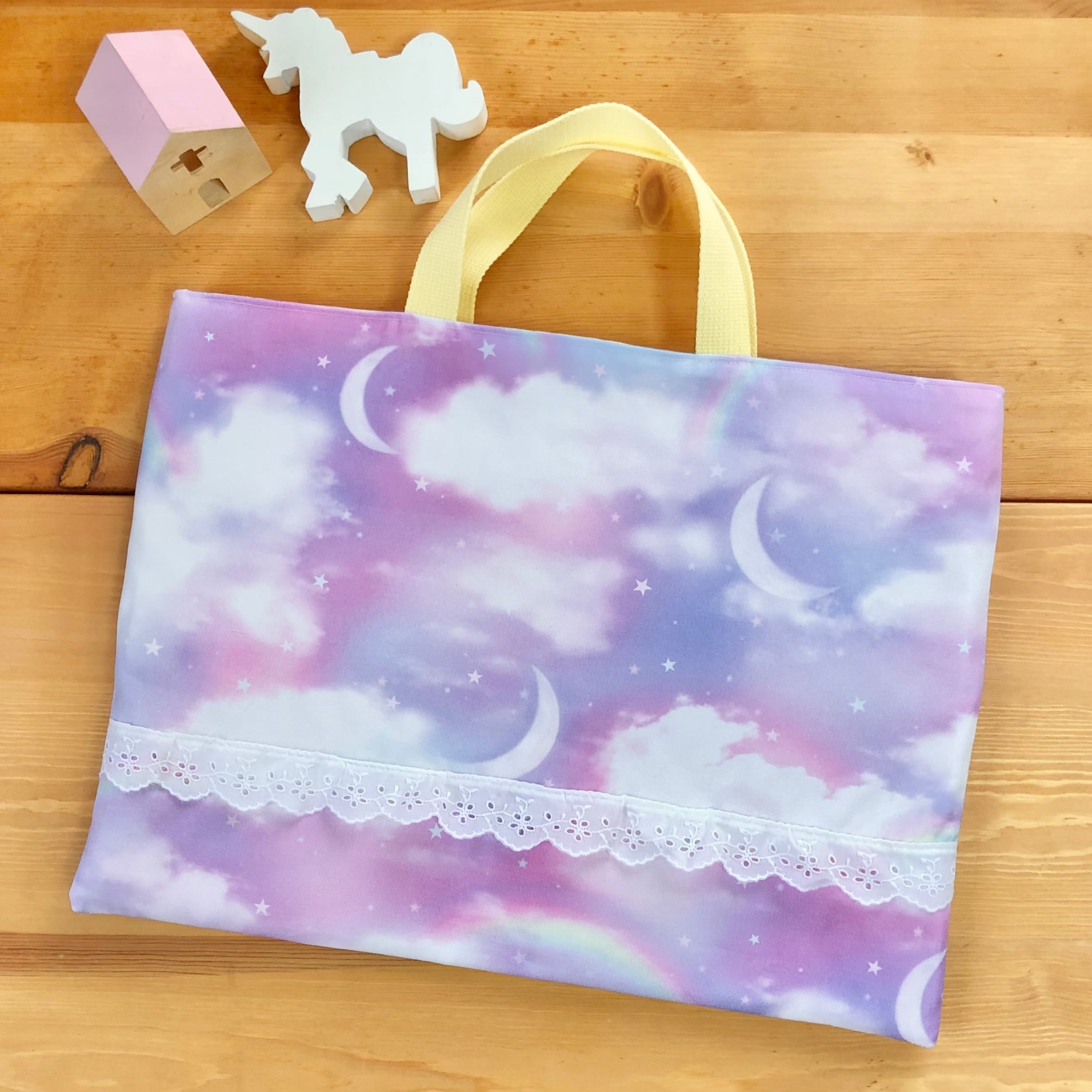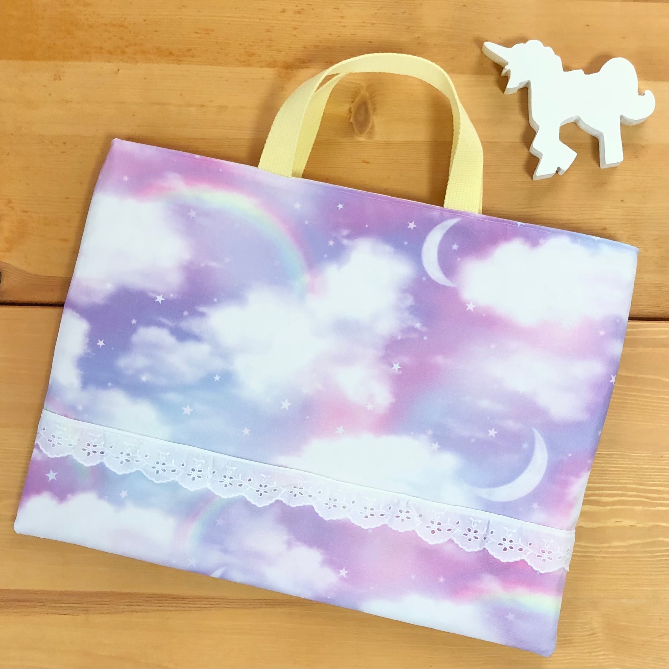 レース付き【ゆめかわパステルスカイ】レッスンバッグ・通園バッグ☆30×40cm★B.2|通園用のかわいいトートバッグや子供スモックHoshizora☆ほしぞら
