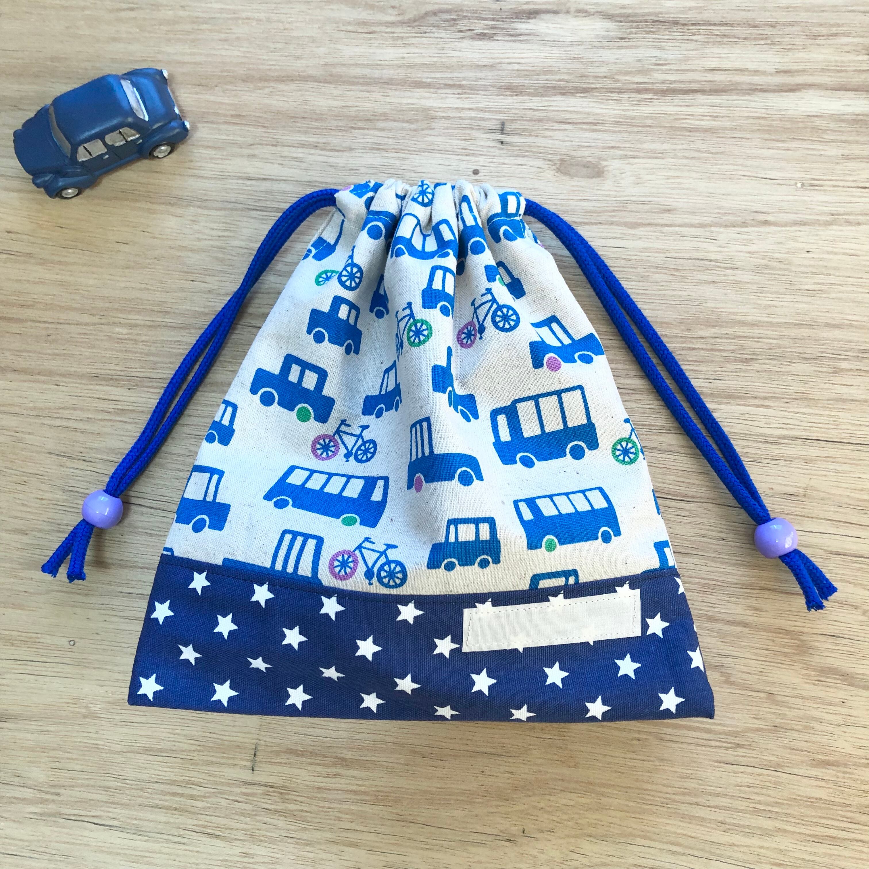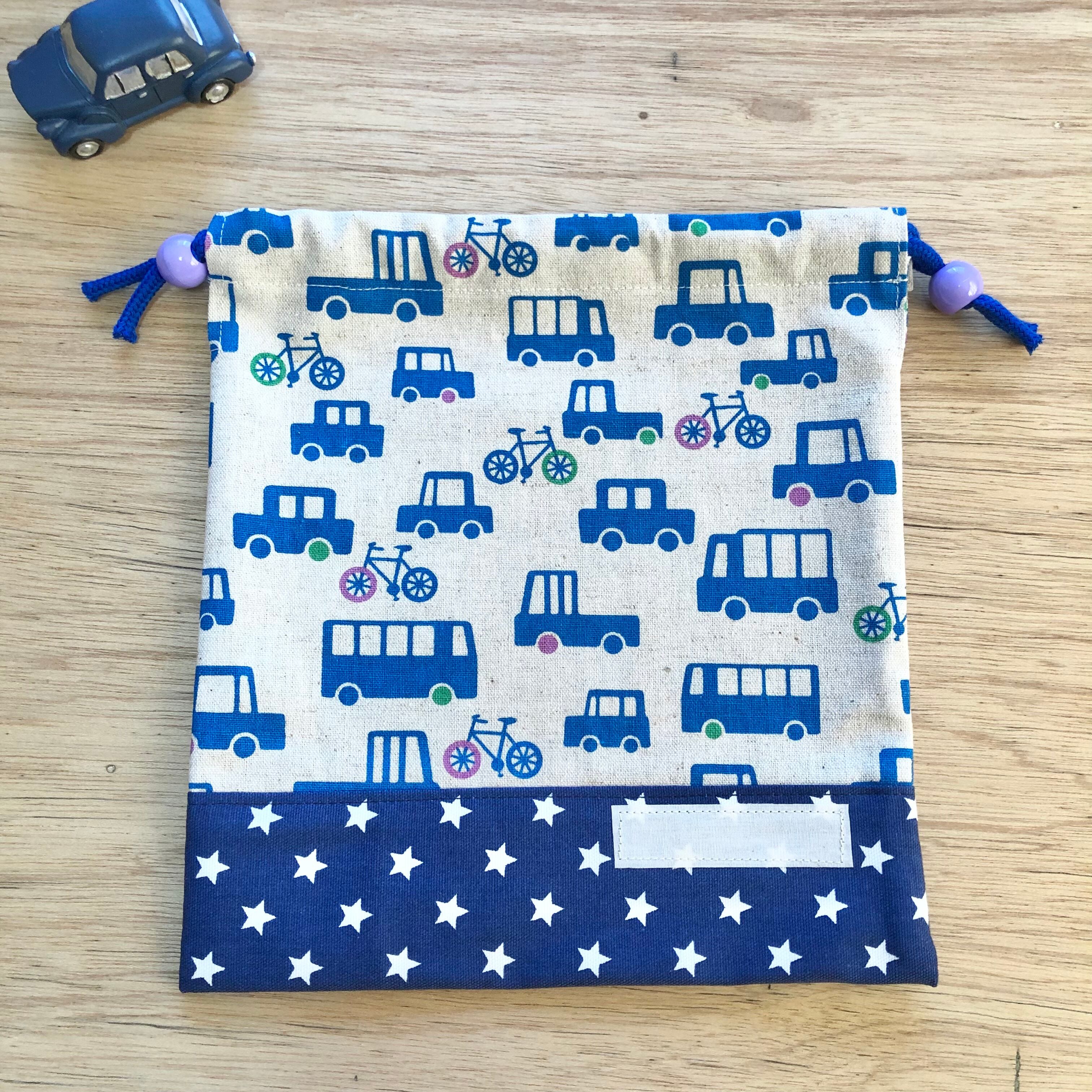 巾着袋(小)21×20cm【車柄】★ KU. 男の子 くるま |通園通学用のかわいい巾着袋や入園オーダーHoshizora☆ほしぞら