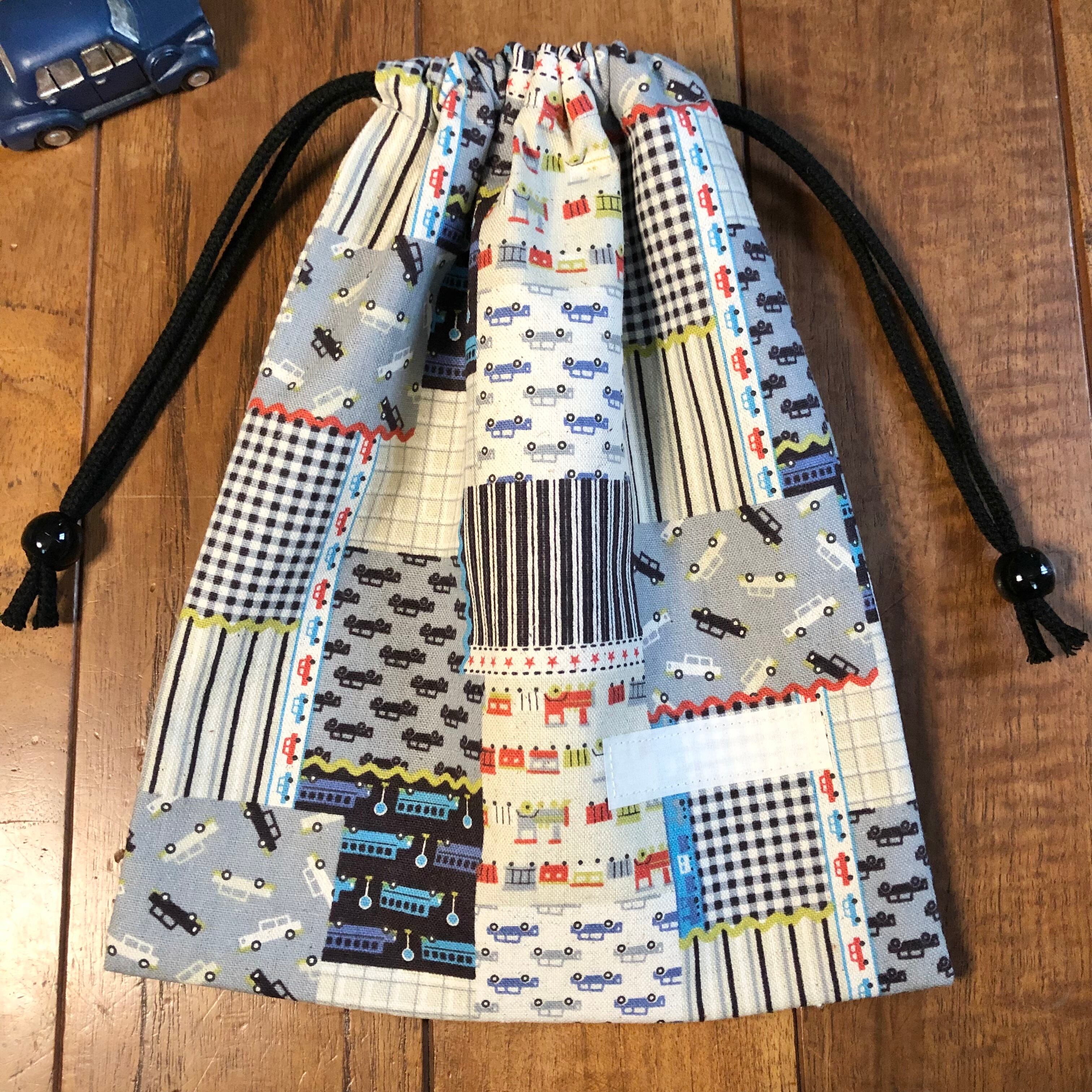 巾着袋(おやつ袋)24×20cm 【車柄】 ★KY.48 くるま 男の子 |通園通学用のかわいい巾着袋や入園オーダーHoshizora☆ほしぞら