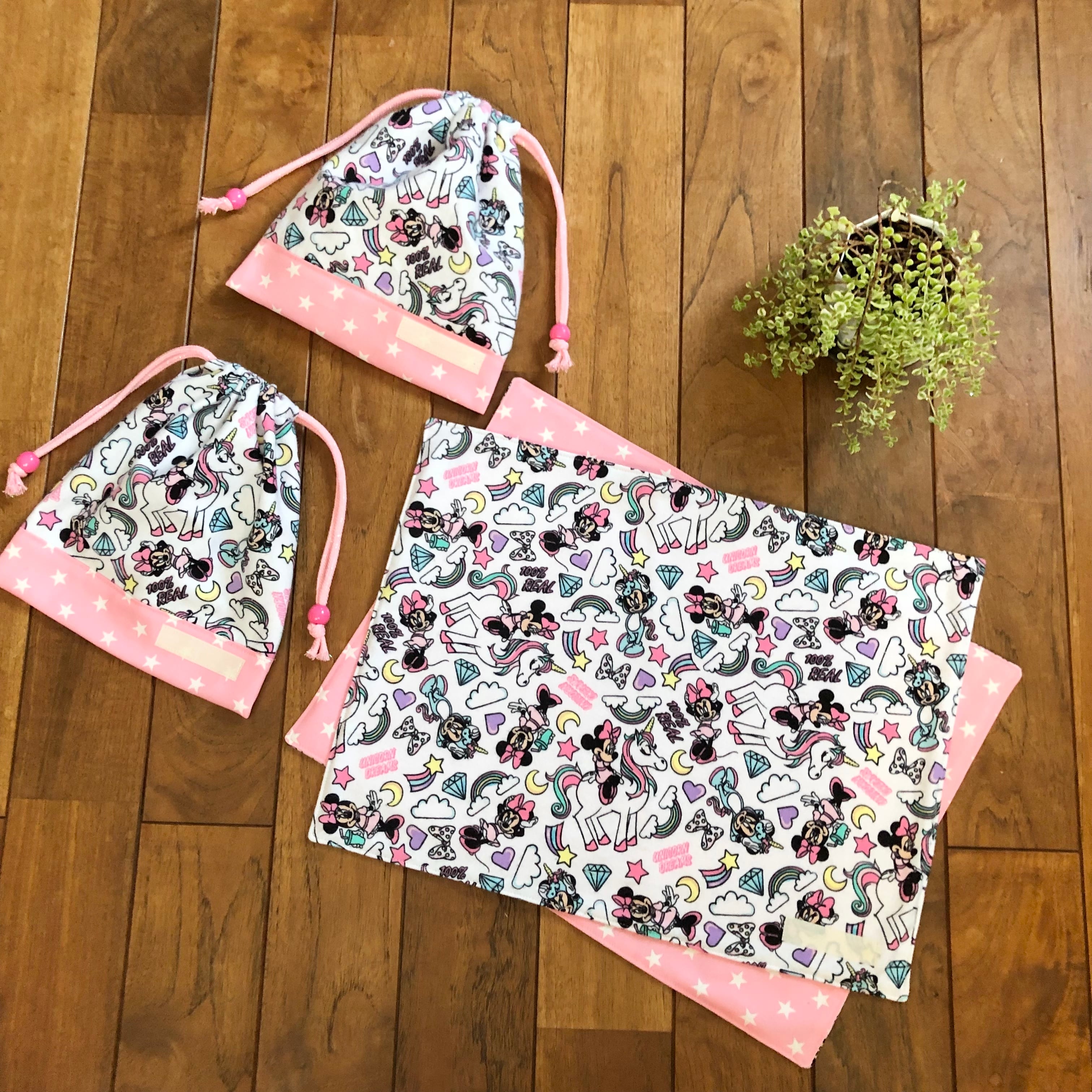 BASEメッセージよりS様オリジナルオーダー品 14点 荷物袋 上靴入れ ナフキン 給食袋 マスク |通園通学用のかわいい巾着袋や入園オーダーHoshizora☆ほしぞら