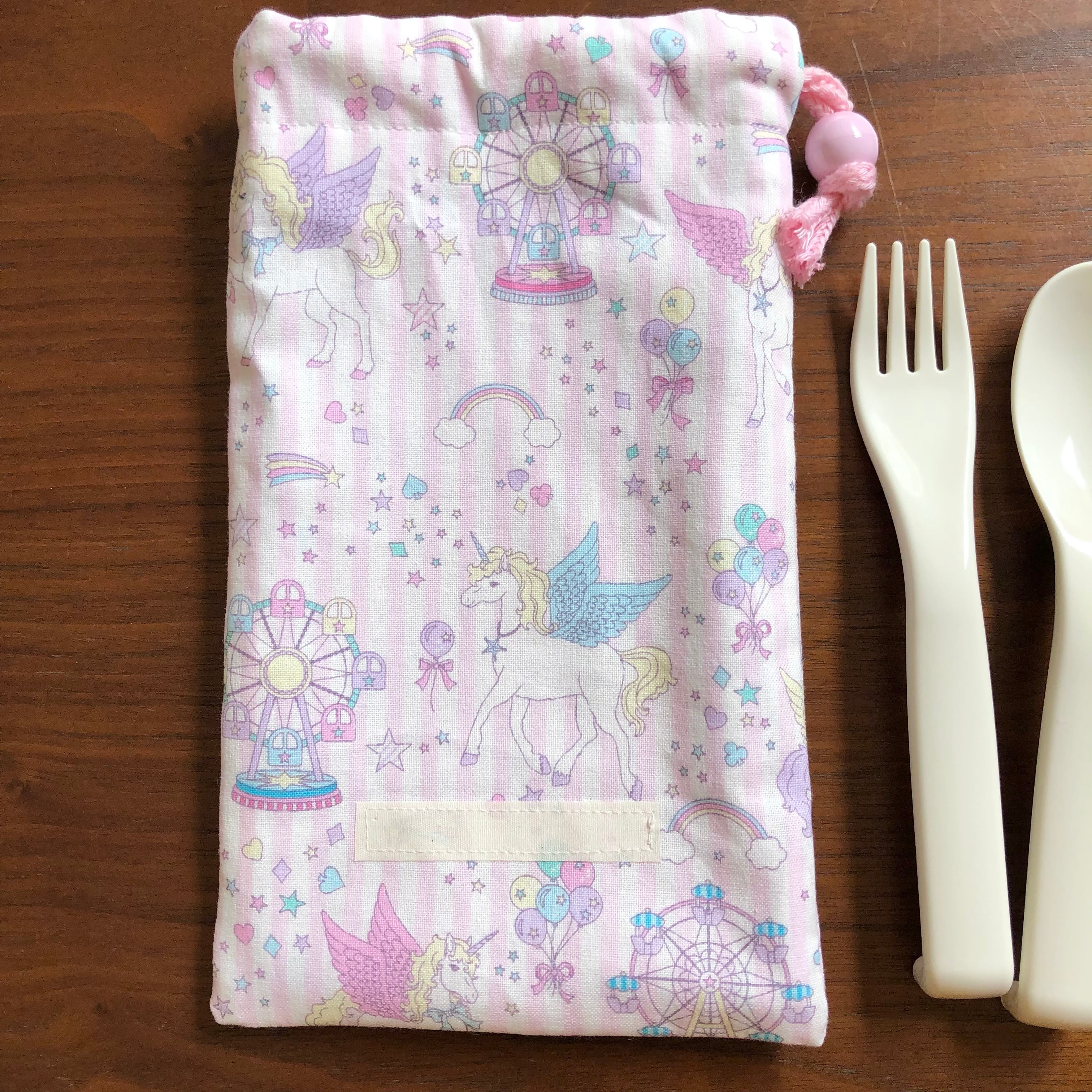 巾着袋(縦長)☆20×12cm 【観覧車ペガサス】 ★KI.58 ゆめかわ ユニコーン 女の子 トリプルセット 3点セット|通園通学用のかわいい巾着袋や入園オーダーHoshizora☆ほしぞら
